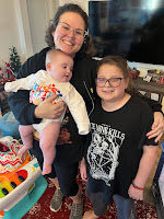 Ahh, December. December was magical. Benny and Lily, June's elf, came out. It's been a year since Finn had his last seizure, we found out our court date to finalize the adoption is in January, we helped to pay to send my mother in law and father in law to Hawaii for my mother in law's 50th birthday. One of my best friends from another state surprised us with a visit and we got to meet her little baby for the first time. We got to play in "real snow", visited a second Santa, baked cookies, did our Christmas light scavenger hunt, went to a Christmas festival with our church, we got to go to a Christmas tree farm for the first time ever, and Junie had to go to the ER not once, but twice. June also got her first two teeth at the same time.